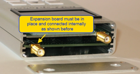 Before following this process, be sure you upgrade the RF Explorer firmware the latest available version from the download page. The firmware upgrade must be done before you install the hardware Expansion Module.