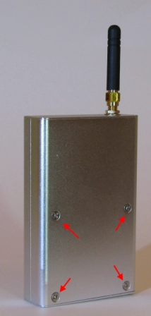Then remove the antenna, the SMA nut and washer. Remove also the 4 screws marked with red arrows below.