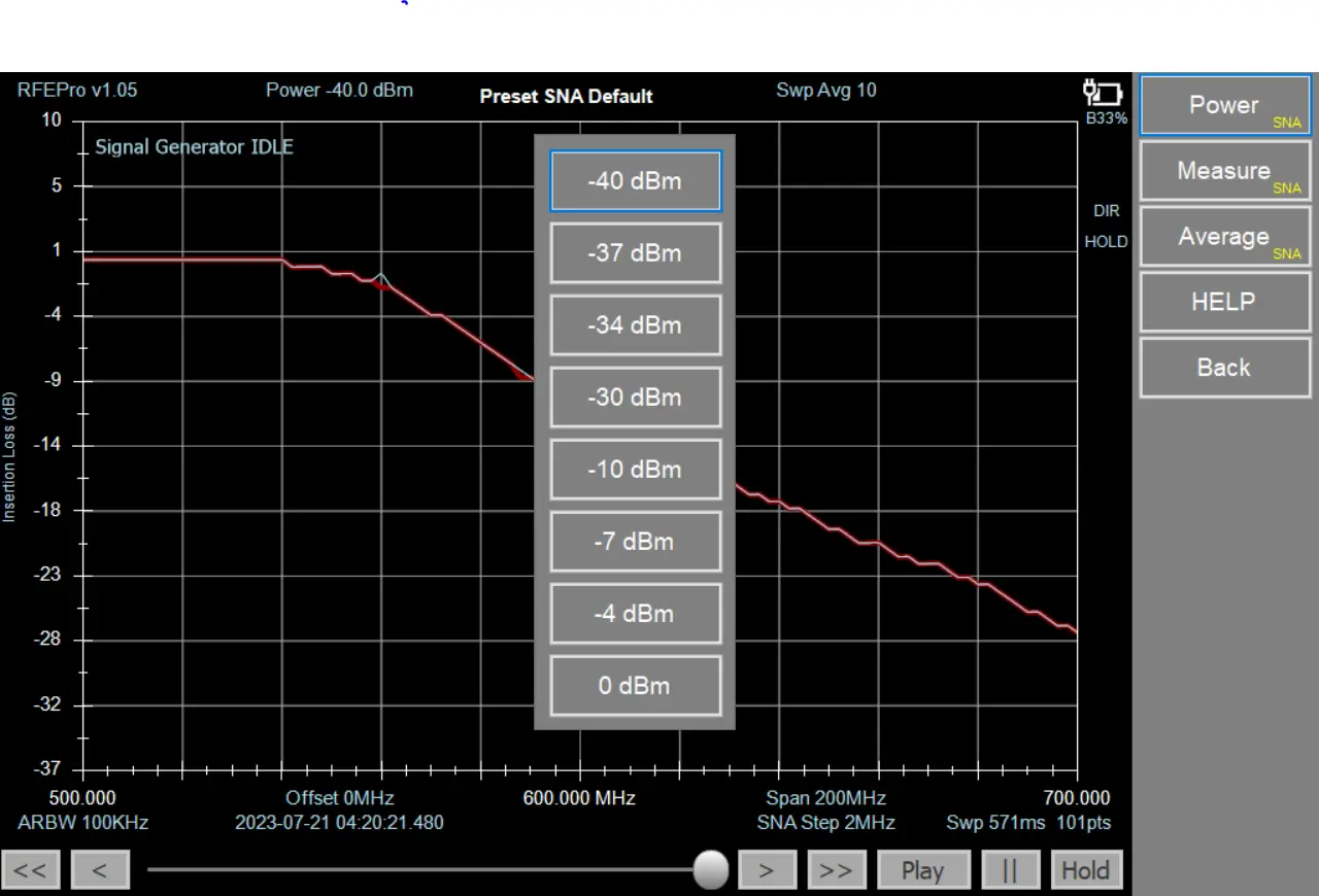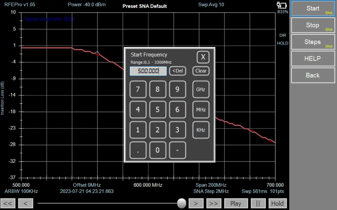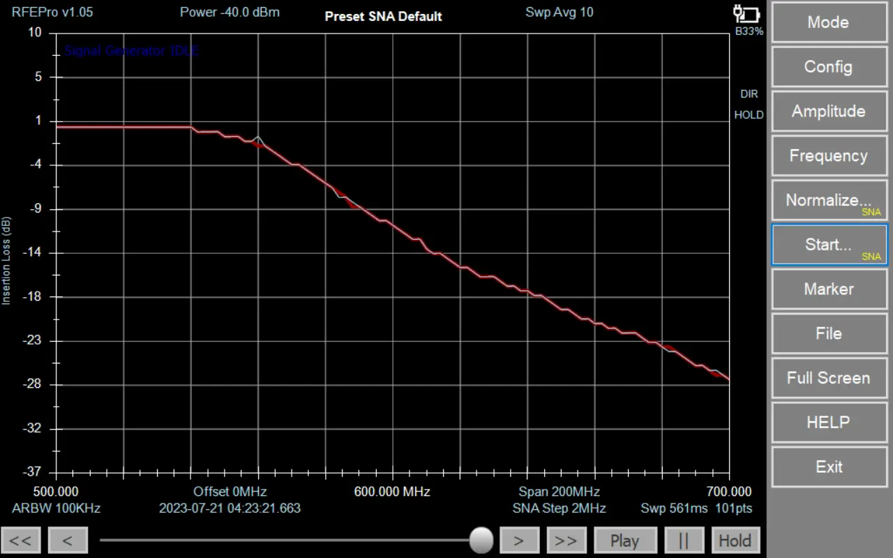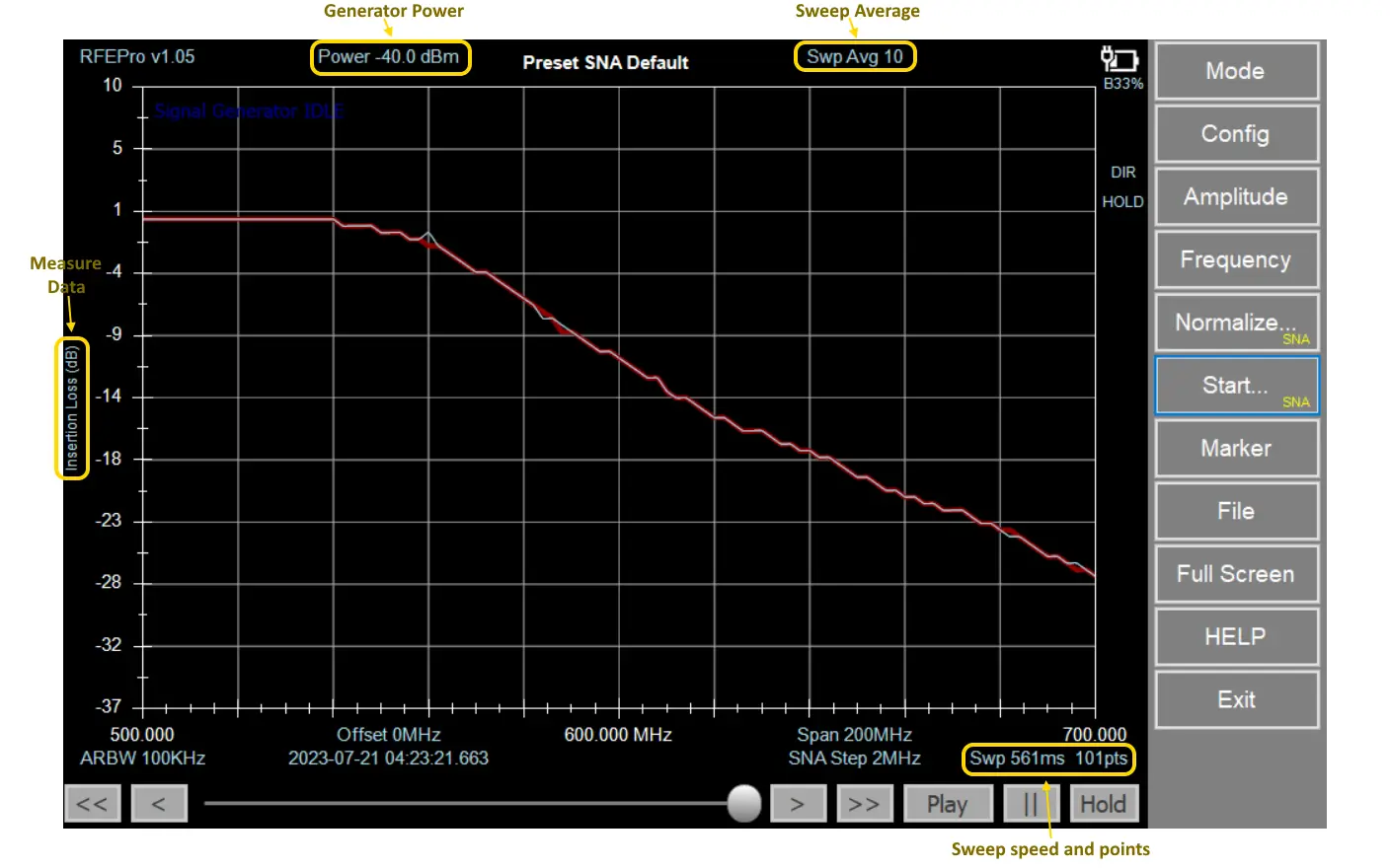 A standard SNA requirement ensures the elimination of any imperfections caused by cables, connectors, or environmental factors. The application accurately measures your setup's response and sets it as the 0 dB reference, allowing all subsequent measurements to be normalized accordingly.