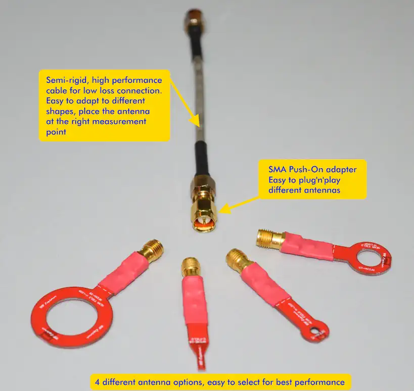 The RF Explorer Near Field Antenna Kit is a set of 4 high performance antennas designed for the most demanding RF diagnosis tasks: